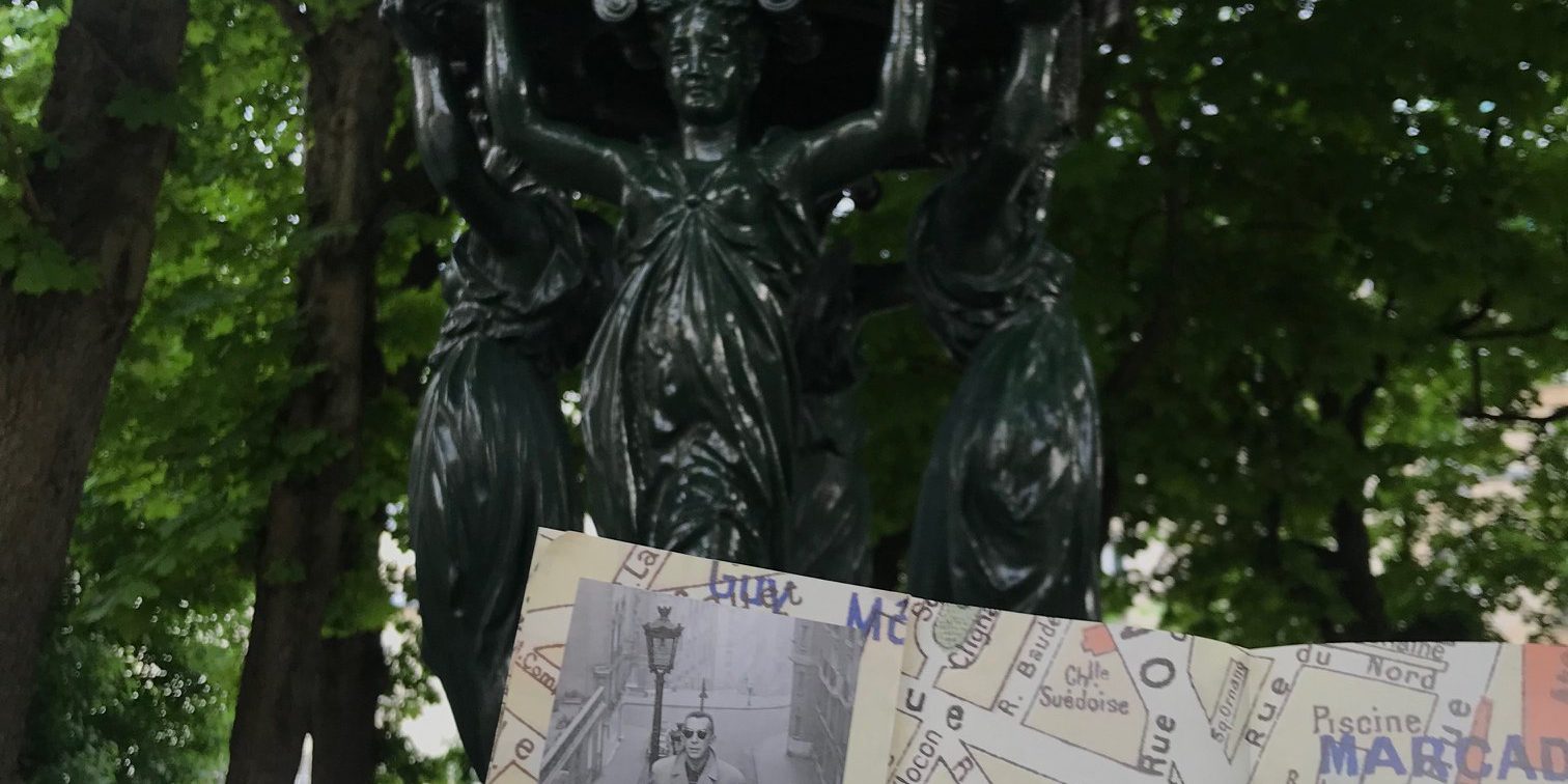 Deuxième pause sur la place Marcel Aymé, devant la statue du Passe-Muraille sculptée par Jean Marais. Michel Lécureur nous raconte en quelques mots l’histoire de cette statue et celle de l’appartement occupé par Marcel Aymé à la fin de sa vie. Il évoque les figures de Louis-Ferdinand Céline et du peintre Gen Paul, amis intimes et voisins de Marcel Aymé, également présents dans la nouvelle « Avenue Junot ».