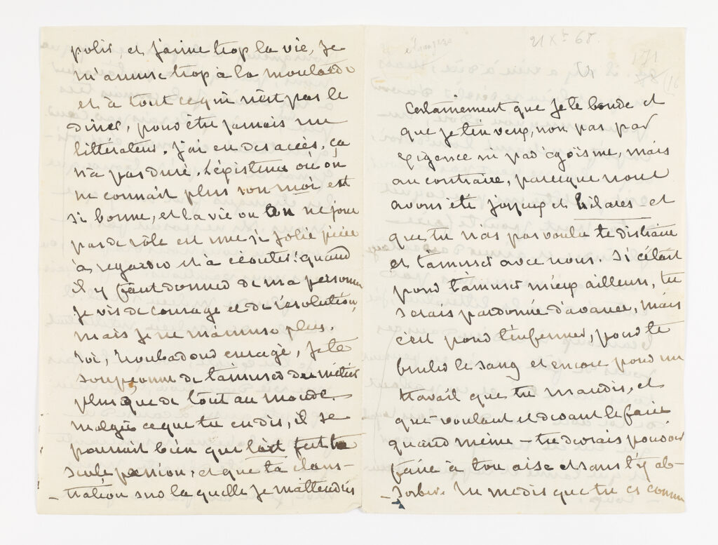 HL – Considèrent-ils tous deux ces lettres comme une œuvre littéraire, capable de compléter, voire de couronner la leur ? Et nous, pouvons-nous la considérer comme telle ?