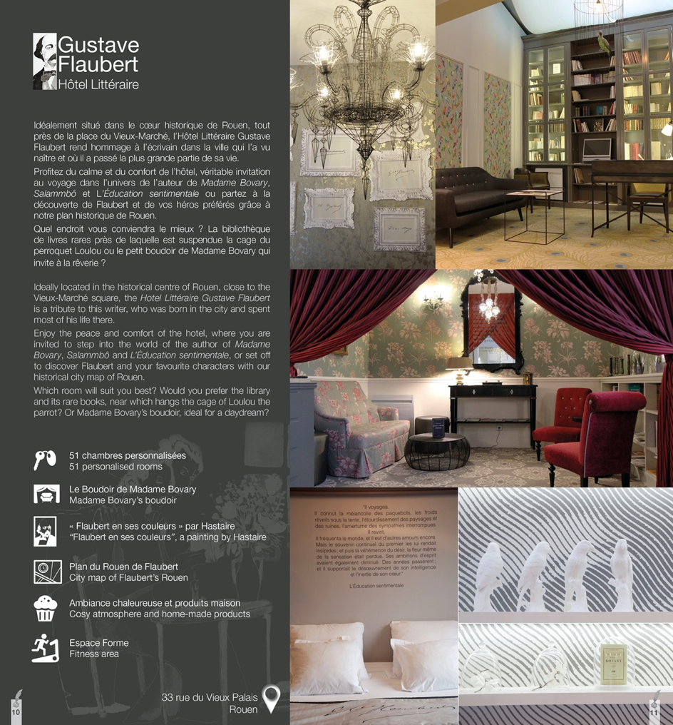 Brochure publicitaire de la Société des Hôtels littéraires. Hôtel Gustave Flaubert, Rouen, 2015, P.10-11.