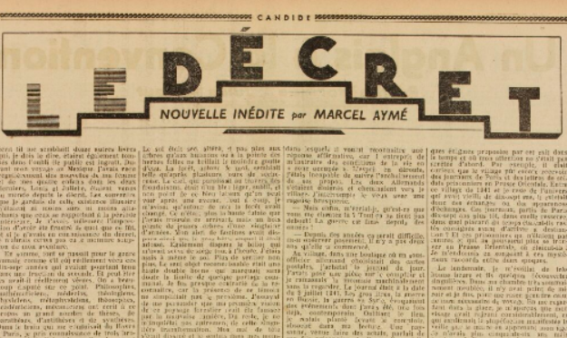 ------------------------------------------------"La Carte" a été publiée pour la première fois le 12 avril 1942 dans La Gerbe et "Le Décret" dans Candide du 29 octobre 1941. Ces deux nouvelles furent ensuite reprises dans le recueil Le Passe-Muraille (1943). Depuis, elles ont été publiées dans les Collections de poche et La Pléiade (volume III).