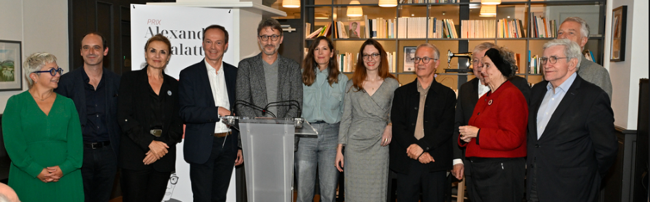 Le jury du prix Alexandre Vialatte et le lauréat, Thierry Laget, dans les salons de l'Hôtel Littéraire Alexandre Vialatte à Clermont-Ferrand le 4 octobre 2024