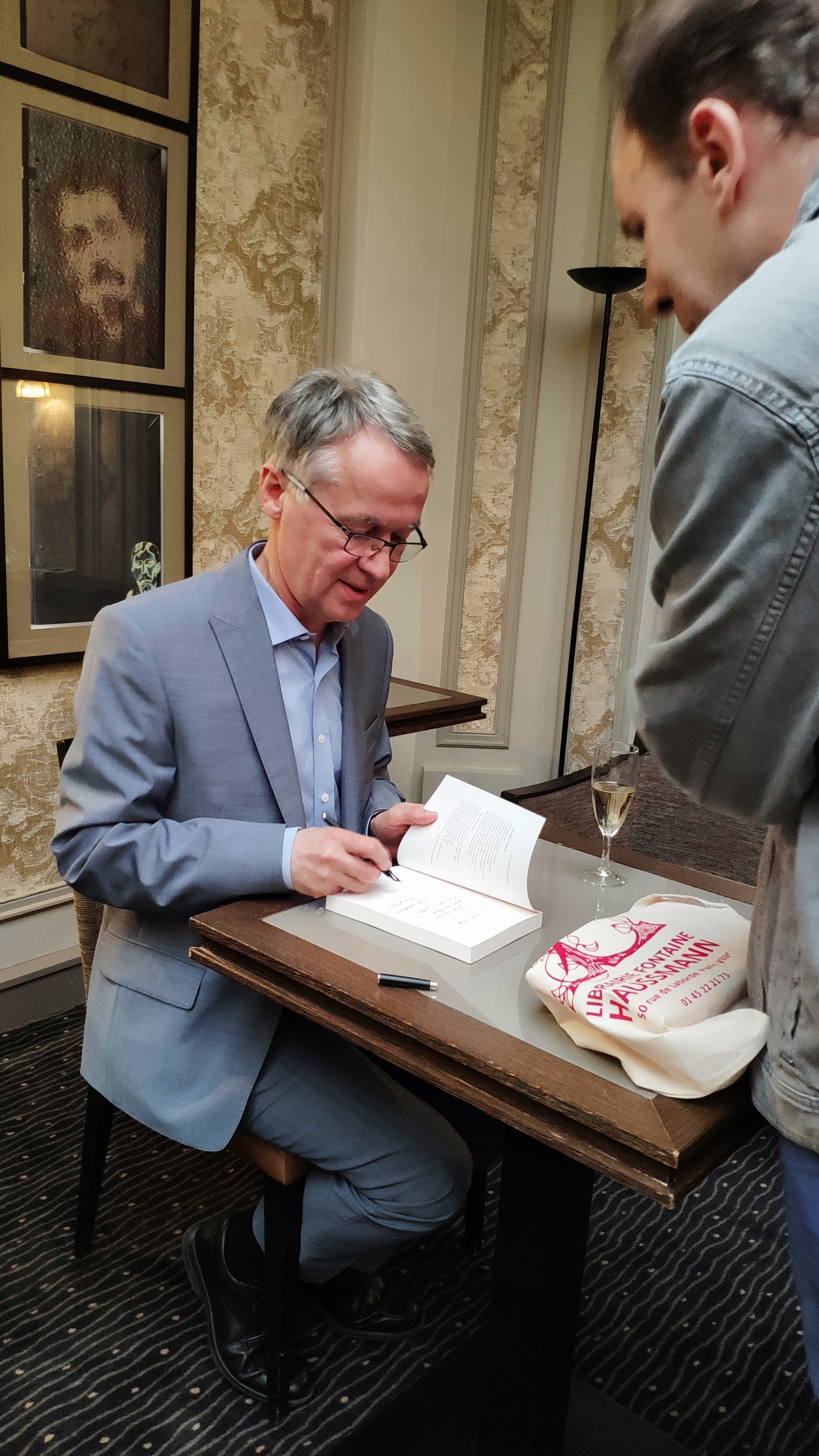 Pourtant, depuis des décennies, je conservais dans mon portefeuille le texte d’une allocution que j’avais rédigée pour ne pas être pris au dépourvu au cas où, brusquement, sans crier gare, on m’aurait décerné un prix littéraire, et où l’on aurait attendu de moi que je réponde, par des remerciements circonstanciés, à un compliment tel celui, très aimable et si joliment tourné par Évelyne Bloch-Dano, que vient de lire Laure Hillerin. Je l’avais intitulée — un peu pompeusement, je le reconnais — « Discours de Stockholm ». Ce discours n’a toujours pas servi, mais, rassurez-vous, ce n’est pas ce soir que je le déclamerai, car il est un devoir bien plus urgent à remplir : celui de remercier le jury qui a choisi mon livre — je ne sais comment il a fait, j’aurais été bien embarrassé d’avoir à choisir entre tous ces ouvrages, et il faut imaginer qu’il a tiré à la courte paille —, de remercier le bel hôtel Le Swann qui nous accueille, le président de la Société des hôtels littéraires, Jacques Letertre, la librairie Fontaine Haussmann et Philippe Aubier.