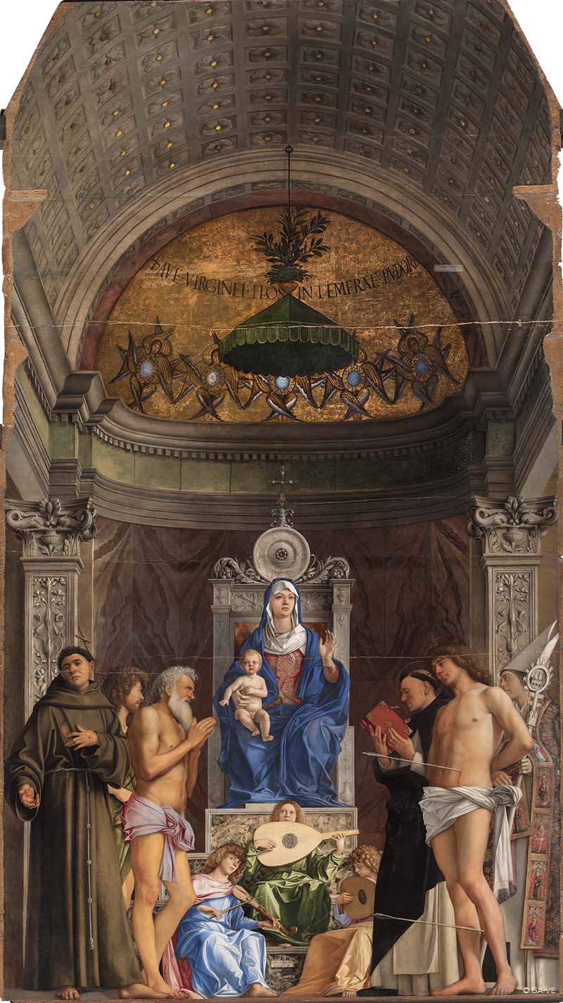 La Vierge à l'Enfant entre sainte Catherine et sainte Marie Madeleine et le sublime Retable de Saint-Job (Pala di San Giobbe) : Vierge à l’Enfant avec six saints et des anges musiciens.