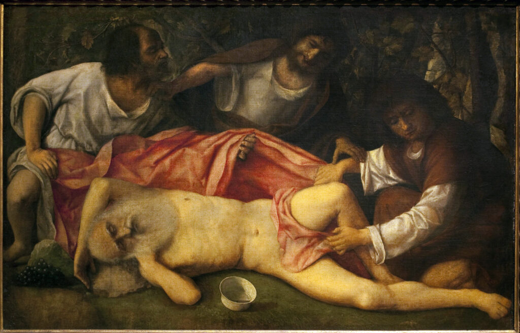 Giovanni Bellini, L’ivresse de Noé, vers 1513-15, huile sur toile, 103 x 157 cm,