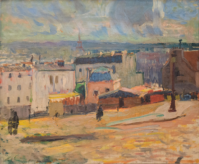 Installée au 12, rue Cortot, où vécurent au début du XXe siècle des artistes et des écrivains, l'institution célèbre ainsi celui qui fut, comme Émile Bernard, Léon Bloy, Suzanne Valadon, Maurice Utrillo ou encore Pierre Reverdy, l’un des anciens habitants des lieux. En 1900, Raoul Dufy (1877-1953), alors élève de Léon Bonnat, s’installa en effet dans l’aile droite de l’actuel musée pour partager avec son condisciple Othon Friesz (1879-1949) “un petit appartement agrémenté d’une espèce de tourelle flanquée d’un escalier par quoi on accédait à ce qu’ils appelaient leur tour”. Et c’est non loin de cet atelier sur rue qu’en 1902 Dufy exécuta, depuis la place Jean-Baptiste Clément, l’une de ses premières vues de Paris. Déjà, dans cette œuvre de jeunesse, c’est la ville aperçue d’en haut, avec ses monuments perçant le ciel, comme ici la Tour Eiffel, et ses façades alignées offertes de face au regard qui stimulent la créativité de Raoul Dufy.