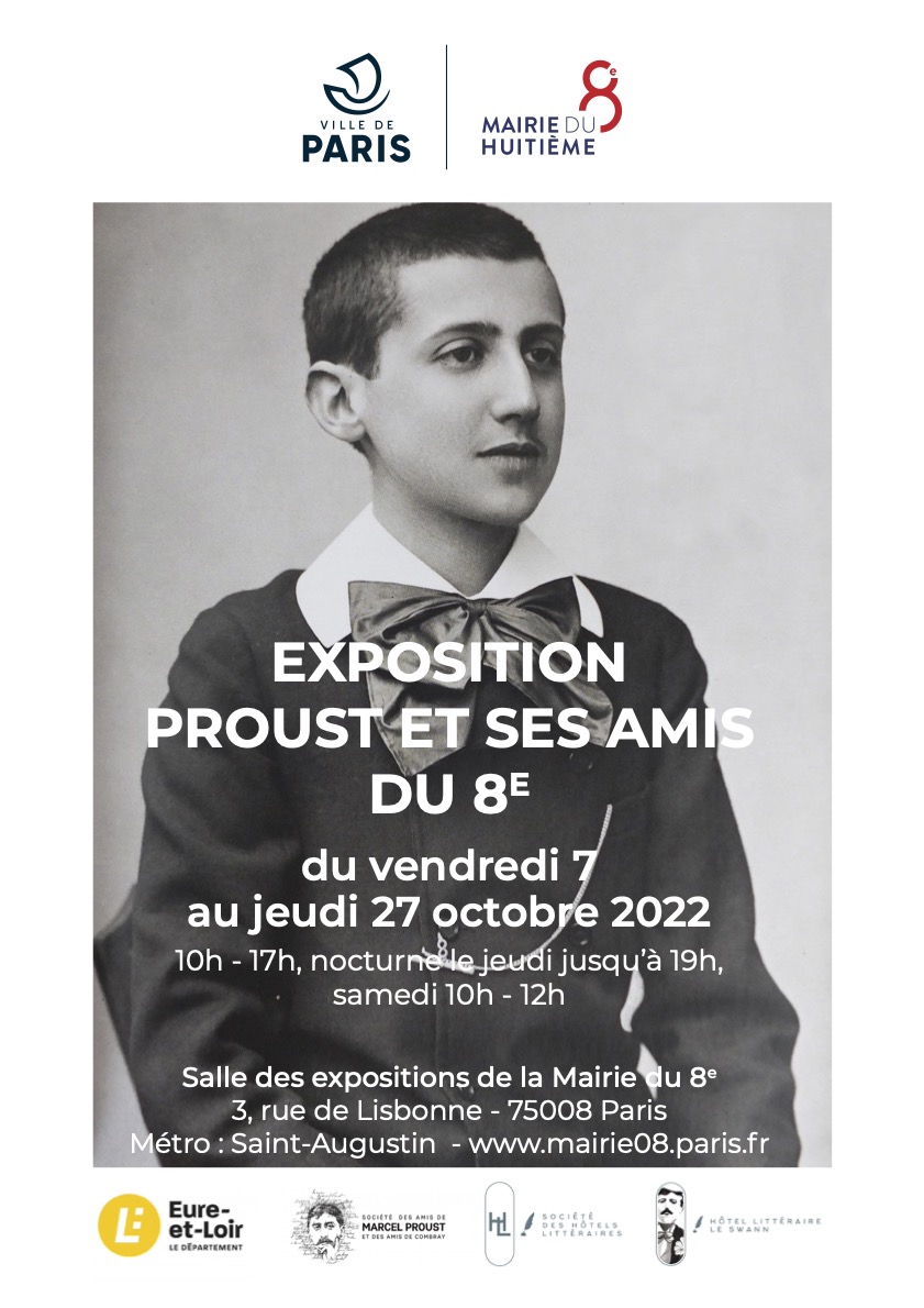 " Les collections de la Société des amis de Marcel Proust ont été sollicitées par illustrer le « Roman parisien » du Musée Carnavalet, « Le coté de la mère» du Mahj et la « Fabrique d’une œuvre » de la BNF, mais lorsque la Mairie du 8e arrondissement de Paris à proposé de marquer par une exposition le centenaire de la disparition de Marcel Proust, la Société et plusieurs prêteurs se sont joints à l’Hôtel Littéraire Le Swann pour participer à ce nouveau projet qui inscrit Proust dans le 8ième arrondissement.