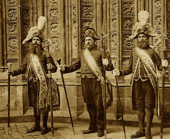 Carte postale ancienne avec des gardes suisses à Rouen