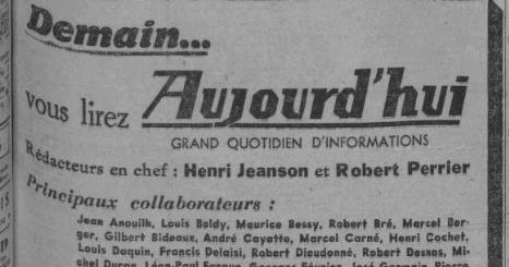 Jeanson est démissionné le 3 décembre 1940 et remplacé par Georges Suarez qui fera d’Aujourd’hui un journal ouvertement collaborationniste.