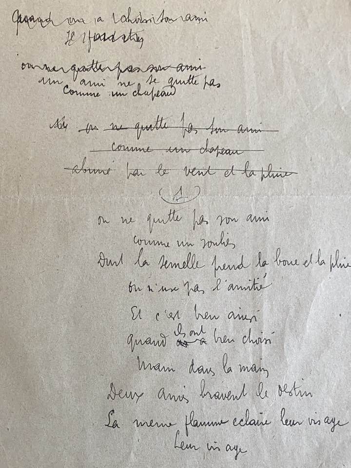 Il ne s’agit pas de brouillon, mais de l’état définitif du texte remis au propre pour être offert à Youki. La première édition de ce leporello se fera à l’identique et a été confiée à la Compagnie typographique dont la vocation est de publier des chefs d’œuvre de la littérature française, sous une forme purement typographique, sans aucune illustration. Il paraîtra à l’automne de cette année.