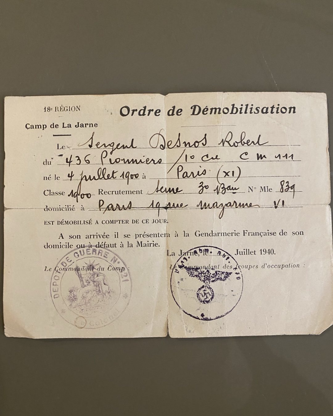 ah! si les journaux avaient une autre tenue quelle belle atmosphère de civisme on pourrait créer, sans creux poncif, sans lyrisme déroulédien. Le malheur c’est que ces messieurs journalistes sont généralement bien cons et bien maladroits. Ils ont fait leur rhé rhethorique (h? 2h? ne sais plus) et ça se sent! mon cher vieux Henri tâche de venir parmi nous. Tu serais sergent en moins de deux et on se rencontrerait au hasard d’une popote ou d’un cantonnement et ça me ferait bien plaisir.