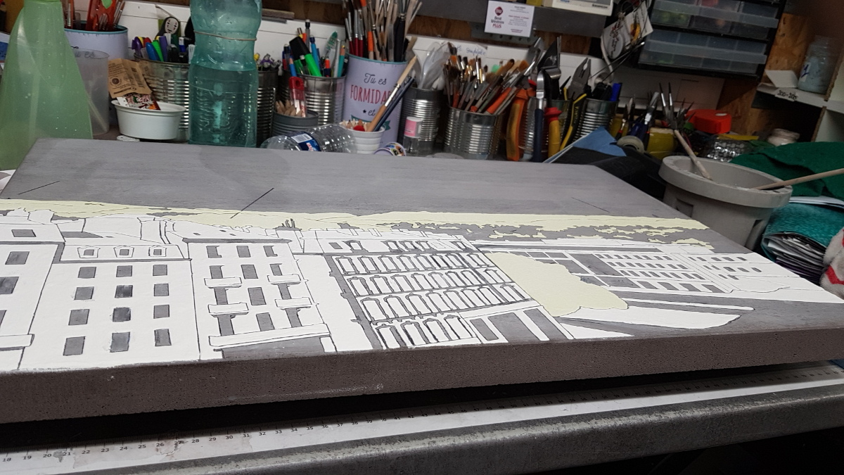 Je fais ce métier depuis quinze ans et c'est une passion sans cesse renouvelée avec les différentes commandes que je reçois. Pour cette table d’orientation, je savais que je ne voulais pas quelque chose en "couleur à peindre", avec un rendu comme la peinture à l'huile mais plutôt avec la technique du cloisonné qui apporte du relief, pour un résultat plus moderne et graphique.