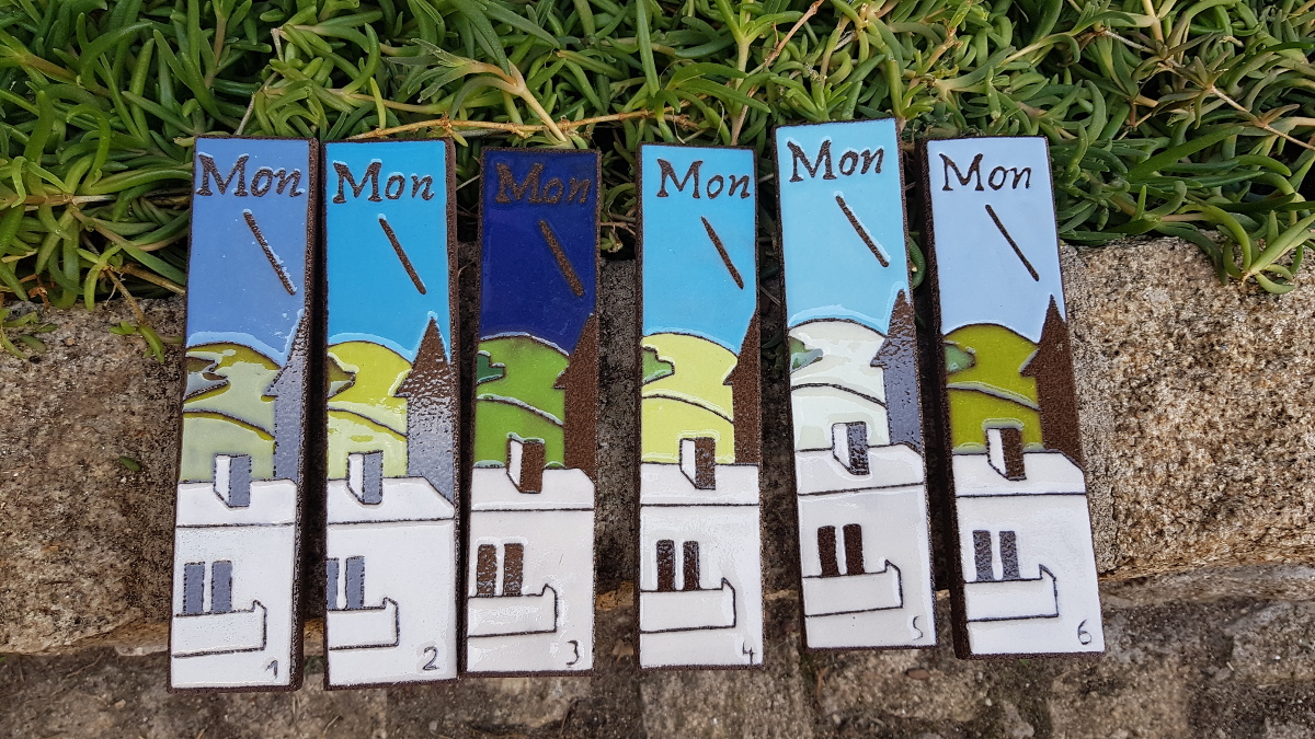 LOP. C'est en effet une technique typiquement auvergnate car la pierre de lave est extraite à Volvic et l'artisanat autour de la lave émaillée appartient à la culture auvergnate. Cet art est assez méconnu et pourtant toutes les tables d’orientation en France sont faites en lave émaillée car c'est une signalétique durable qui résiste au gel et aux UV. Regardez aussi les anciennes plaques publicitaires de Michelin et leurs fameux panneaux de signalisation, qui étaient tous faits avec cette technique, sans compter les bornes de croisement. Aujourd'hui, l'émaillage sur lave est considéré comme un métier d'art et s'utilise beaucoup pour des créations personnelles.