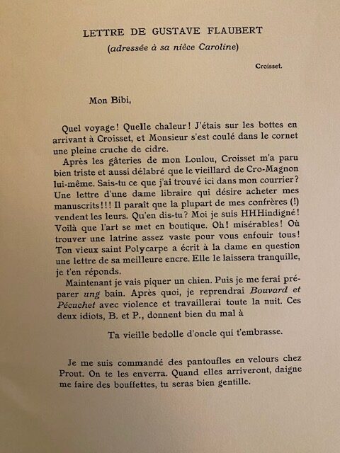 Voici le texte de la lettre dans laquelle Lacretelle pastiche si merveilleusement Flaubert :