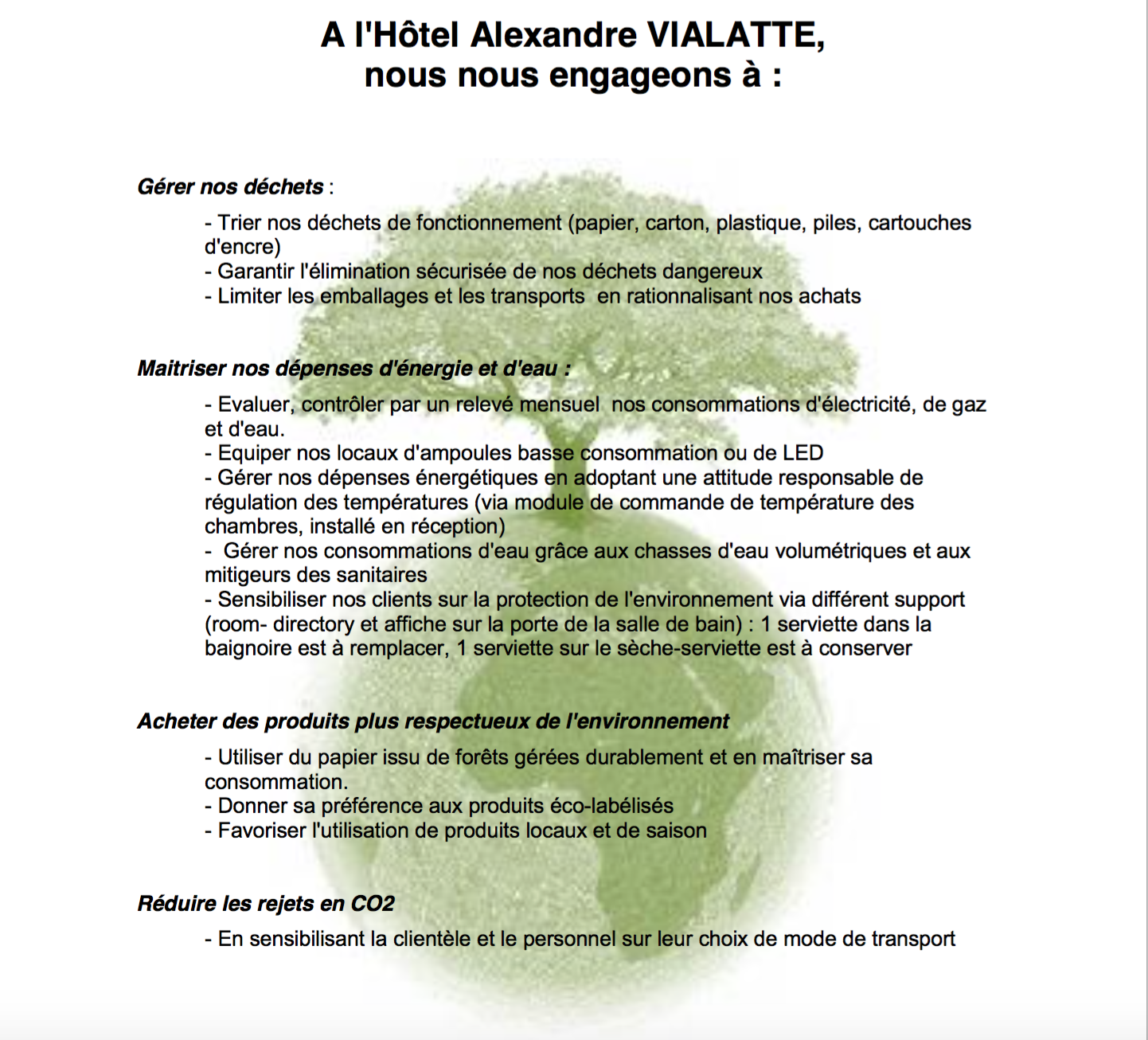 Nous communiquons beaucoup avec nos équipes sur l'importance des éco-gestes (pour recycler les ampoules et les piles par exemple) et j'ai affiché ces idées pour sensibiliser nos hôtes à cette démarche verte. »
