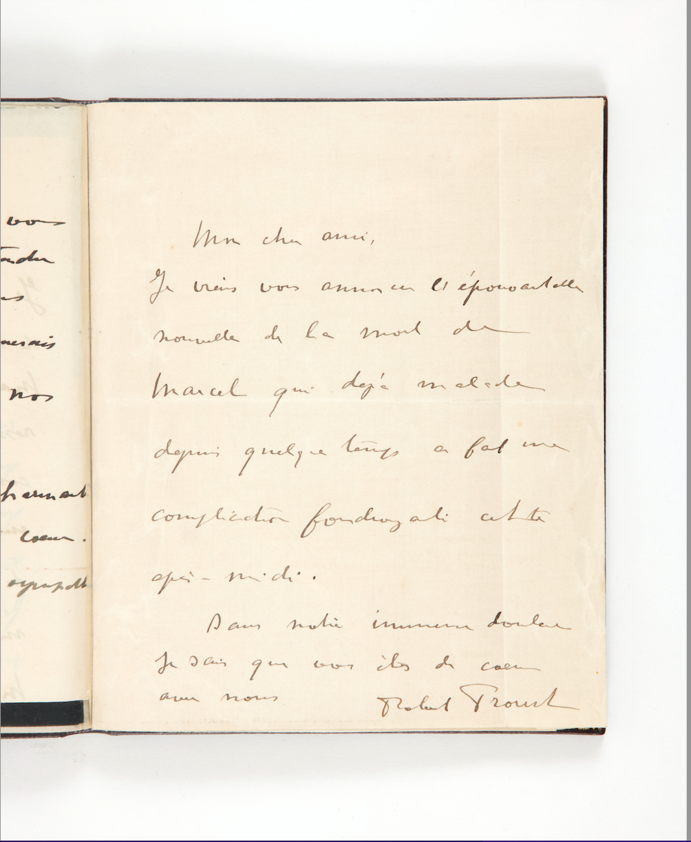 Imaginez les heures bouleversantes que j’ai passées à lire de la main même de Proust l’histoire de l’amitié d’une vie entière et l’éclairage nouveau que cela donne sur l’homme et l’œuvre.
