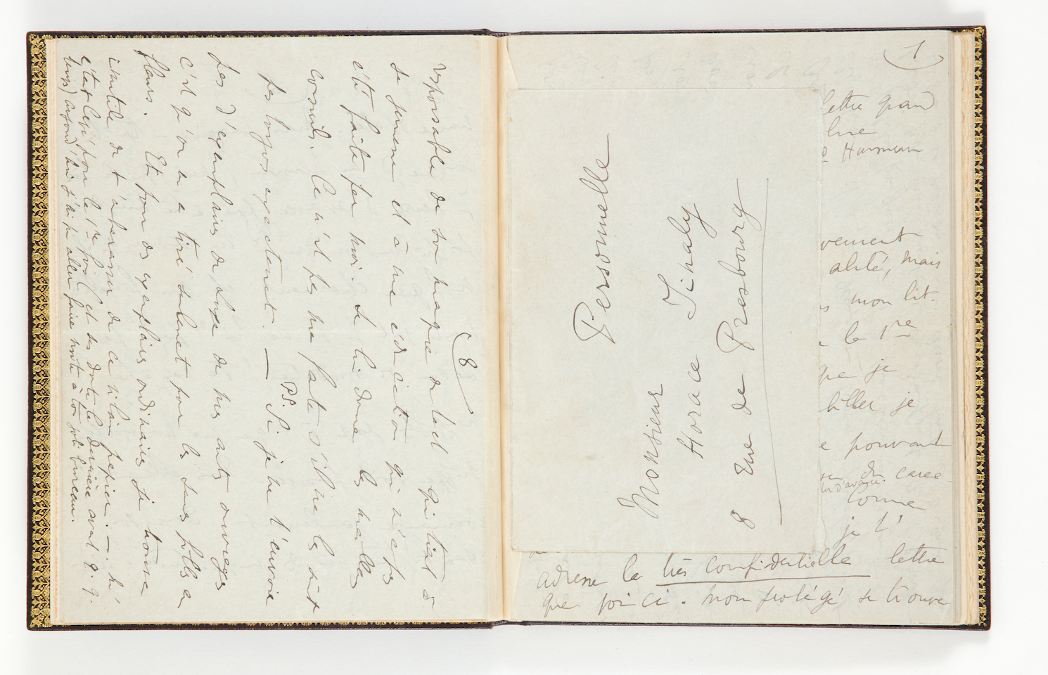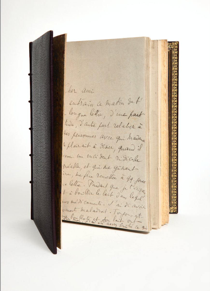 Voici deux ans, nous avons saisi l’opportunité d’acquérir aux enchères, en un lot, seize lettres inconnues de Proust à son ami d’enfance le grand banquier Horace Finaly, ainsi que des lettres de son frère et un ensemble de souvenirs très émouvants, le tout étant relié par Pierre-Lucien Martin en un seul volume par les héritiers d’Horace Finaly.
