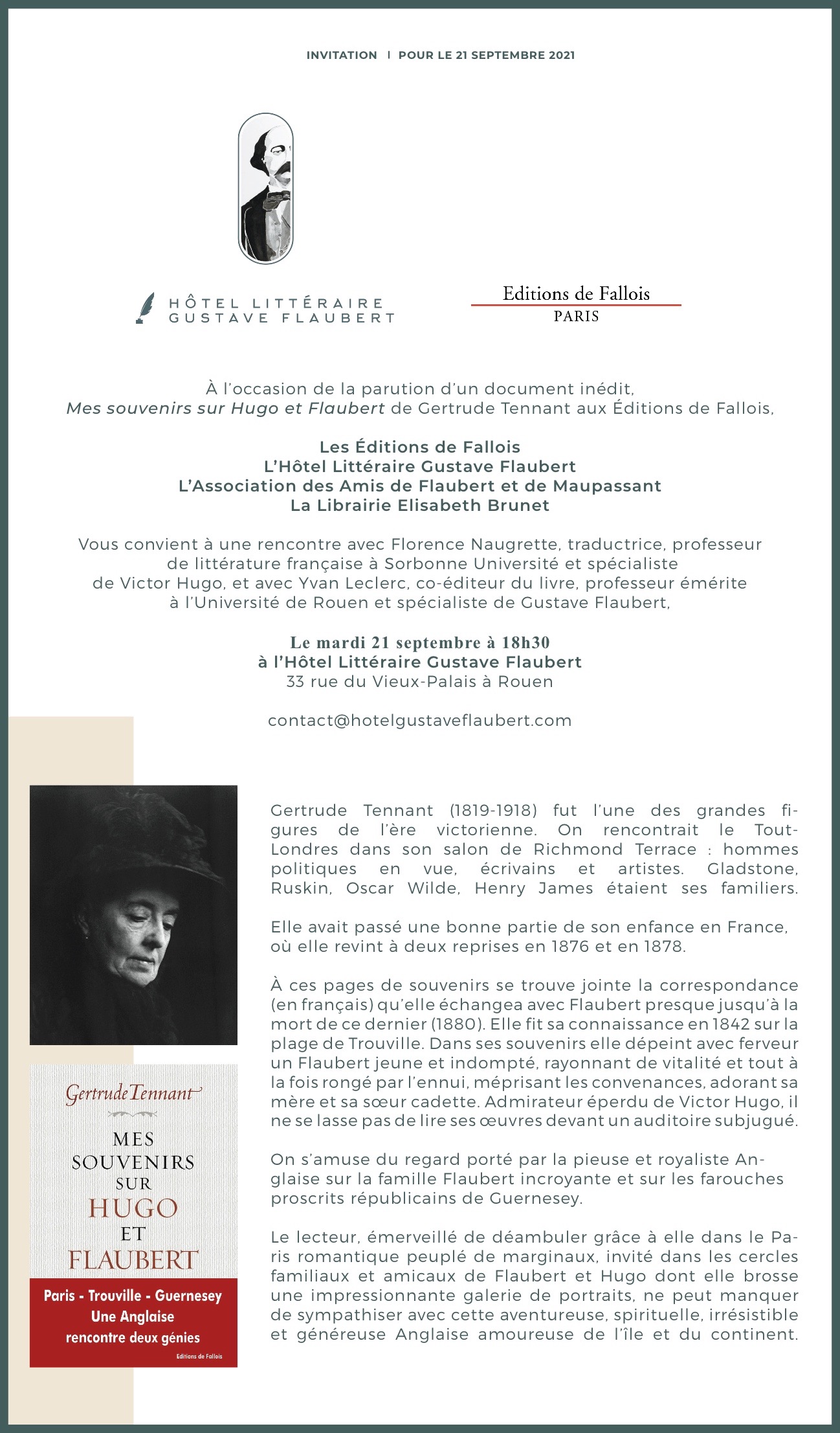 "Mes Souvenirs sur Hugo et Flaubert" de Gertrude Tennant. Entretien avec Florence Naugrette et Yvan Leclerc