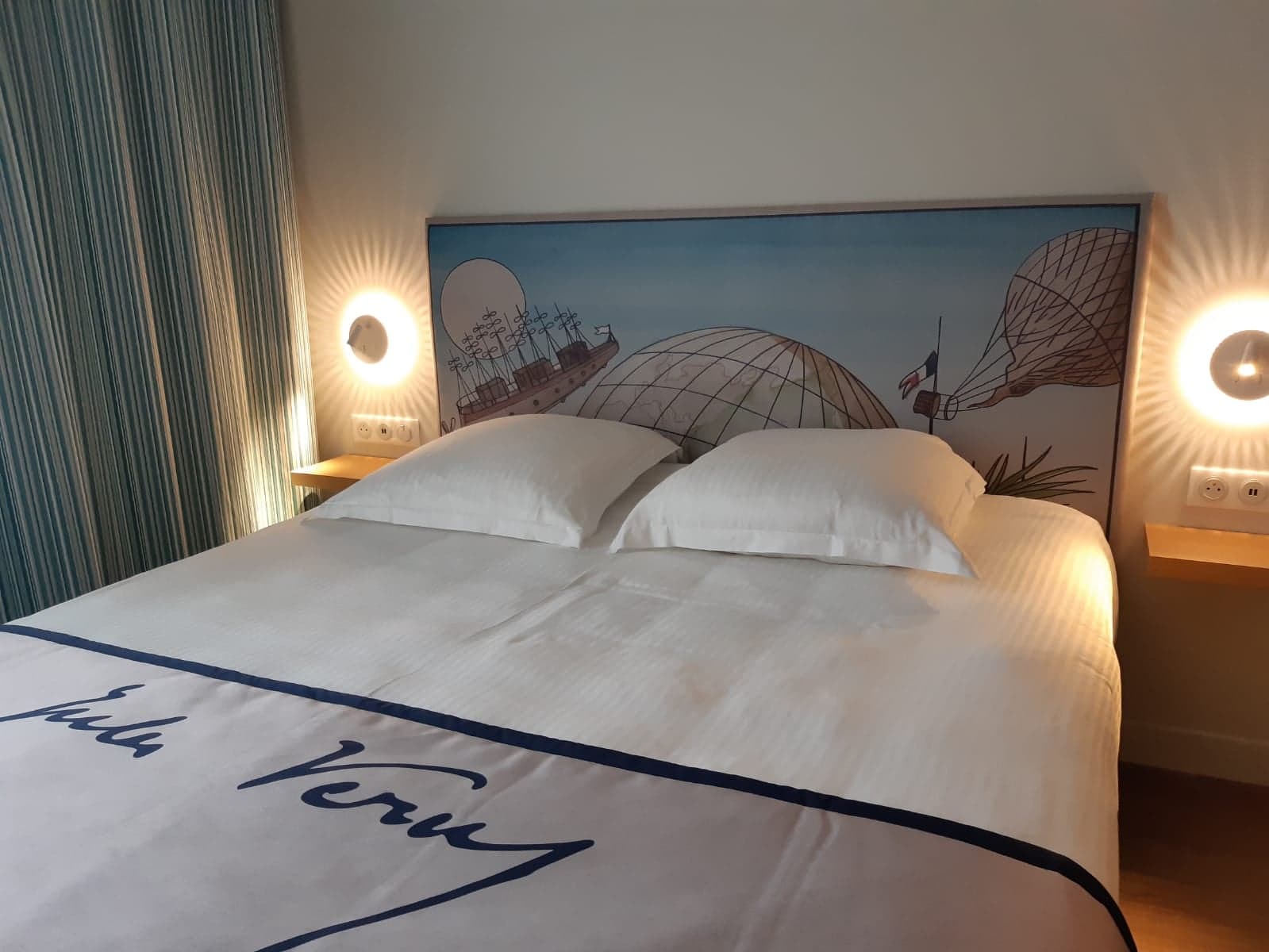 Un parcours à la découverte des merveilleux romans de Jules VerneChacun des trois étages de l’hôtel dispose de 25 chambres que nous avons choisi de répartir autour de la soixantaine de romans verniens qui composent la collection des « Voyages extraordinaires », qu’ils soient maritimes, insolites ou géographiques.