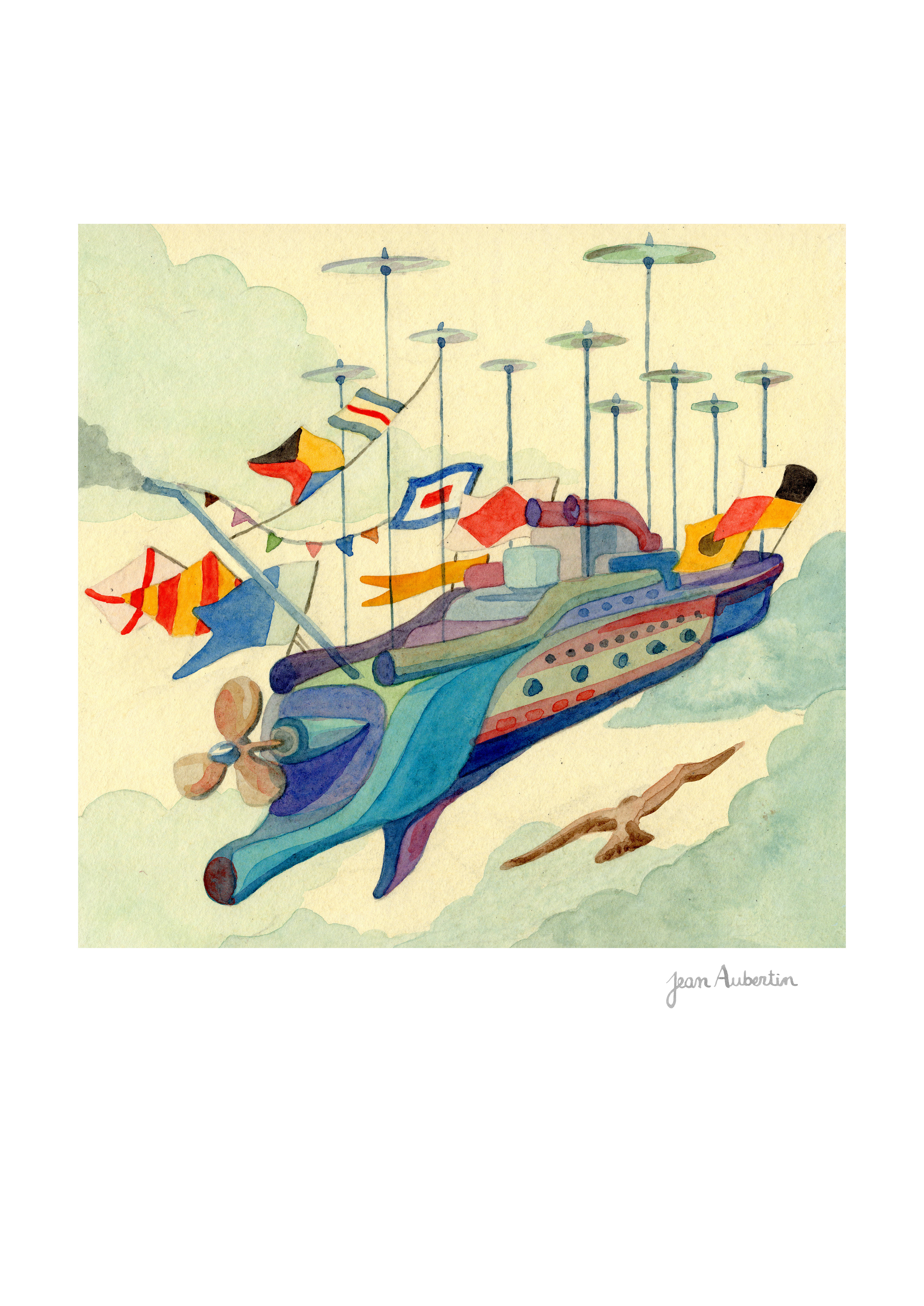 Dans la salle consacrée aux petits déjeuners et au coworking nous est proposée une thématique graphique sur les voyages aériens de Jules Verne dont les romans sont peuplés d’incroyables ballons, d’aérostats et d’engins volants, jusqu’à l’obus propulseur de De la Terre à la lune.