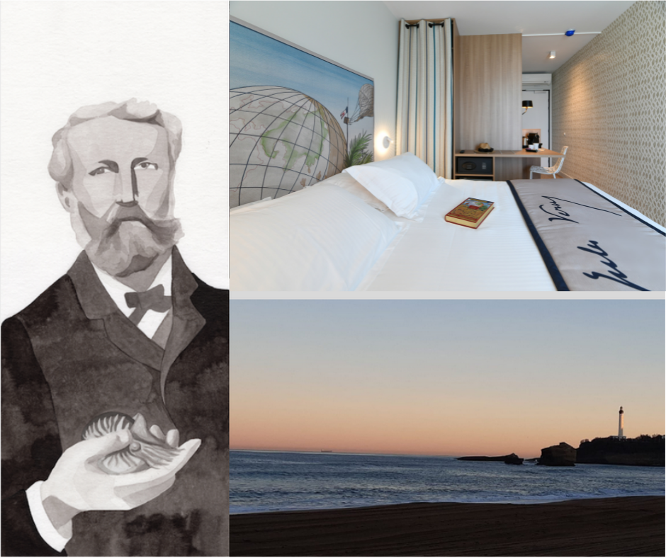 Pour rendre hommage à l’auteur de Vingt Mille lieues sous les mers et du Tour du monde en quatre-vingts jours, l’Hôtel Littéraire Jules Verne est idéalement situé dans la ville de Biarritz, face à l’océan Atlantique.