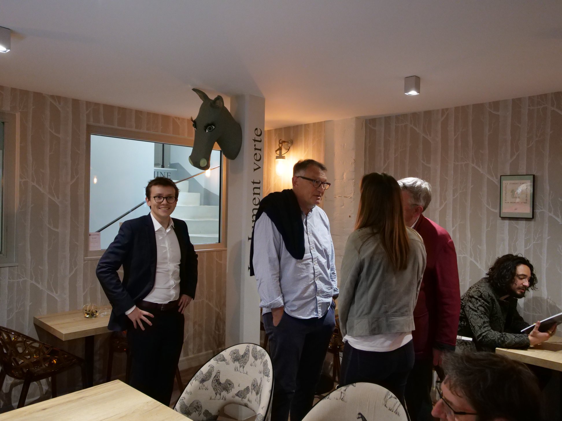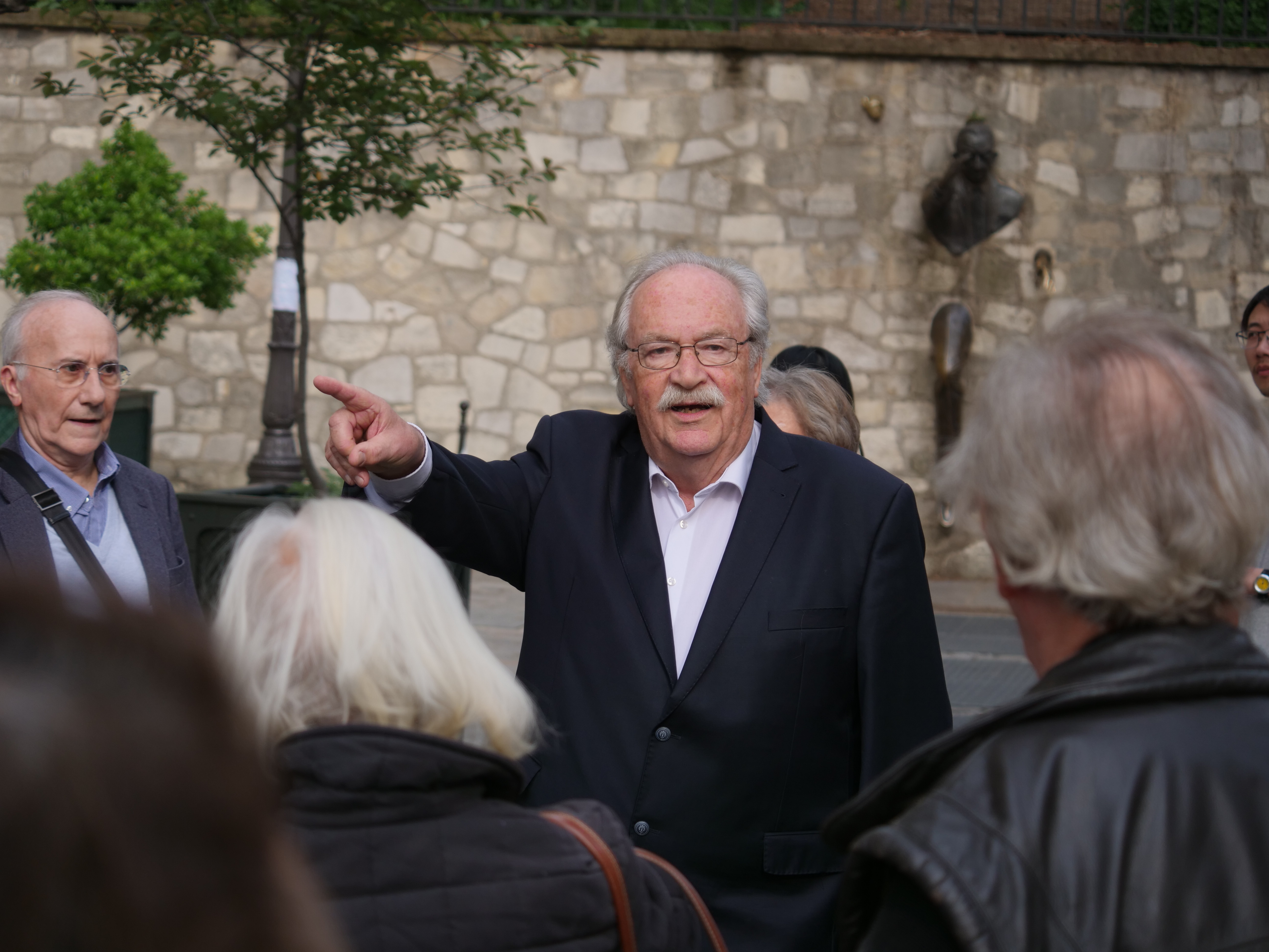 A leurs côtés se trouvaient l’écrivain René Guitton, auteur d’un récent ouvrage sur Rimbaud et Verlaine Arthur et Paul, la déchirure, aux éditions Robert Laffont. Nous accompagnaient aussi Mireille Naturel, spécialiste de Marcel Proust et membre du jury du Prix Céleste Albaret, Jérôme Trollet, président de l’Association des Amis d’Alexandre Vialatte, François Jonquères, secrétaire général du Prix des Hussards, Patrick Besson et Anne-Sophie Stefanini, Karine Ringot, animatrice du blog Montmartre Addict, ou encore Louis Bance, du Cabaret littéraire et musical L'Eurydice situé rue du cardinal Lemoine dans le 5e arrondissement.
