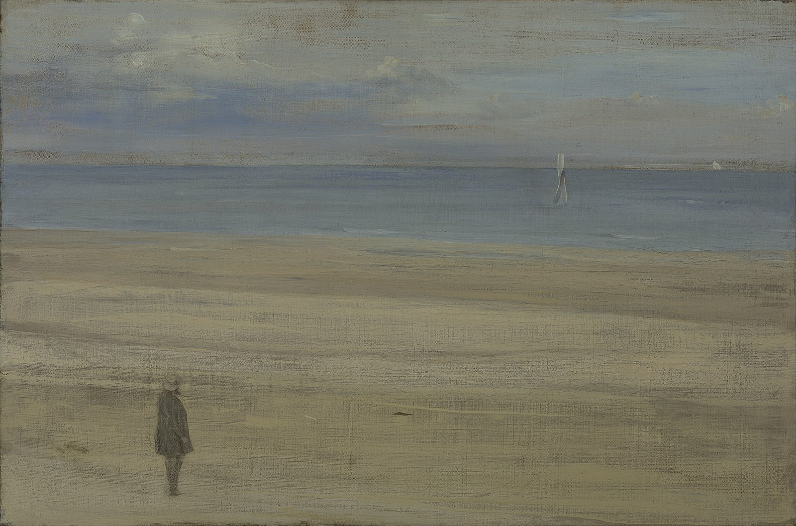 James Abbott McNeill Whistler, Harmonie bleu et argent (1865), représentant Courbet à Trouville, tableau vu par Proust à l’exposition de 1905