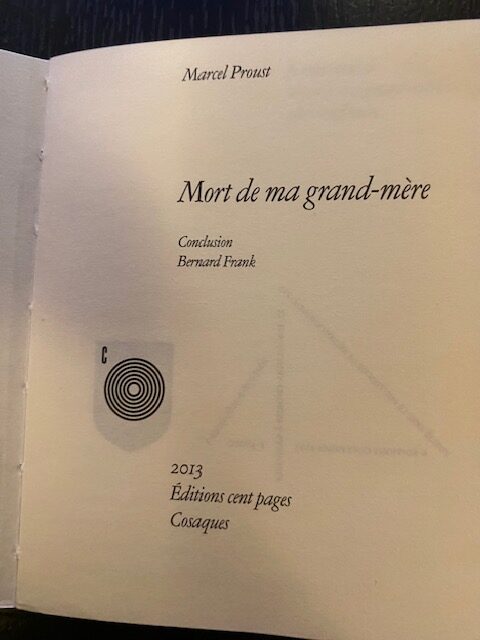 Il y a quelques jours, j'ai de nouveau pensé à lui au détour d'un petit opuscule paru en 2013 aux Éditions cent pages et consacré à la « Mort de ma grand mère » par Marcel Proust, suivi d'une conclusion écrite en 1992 de Bernard Frank.