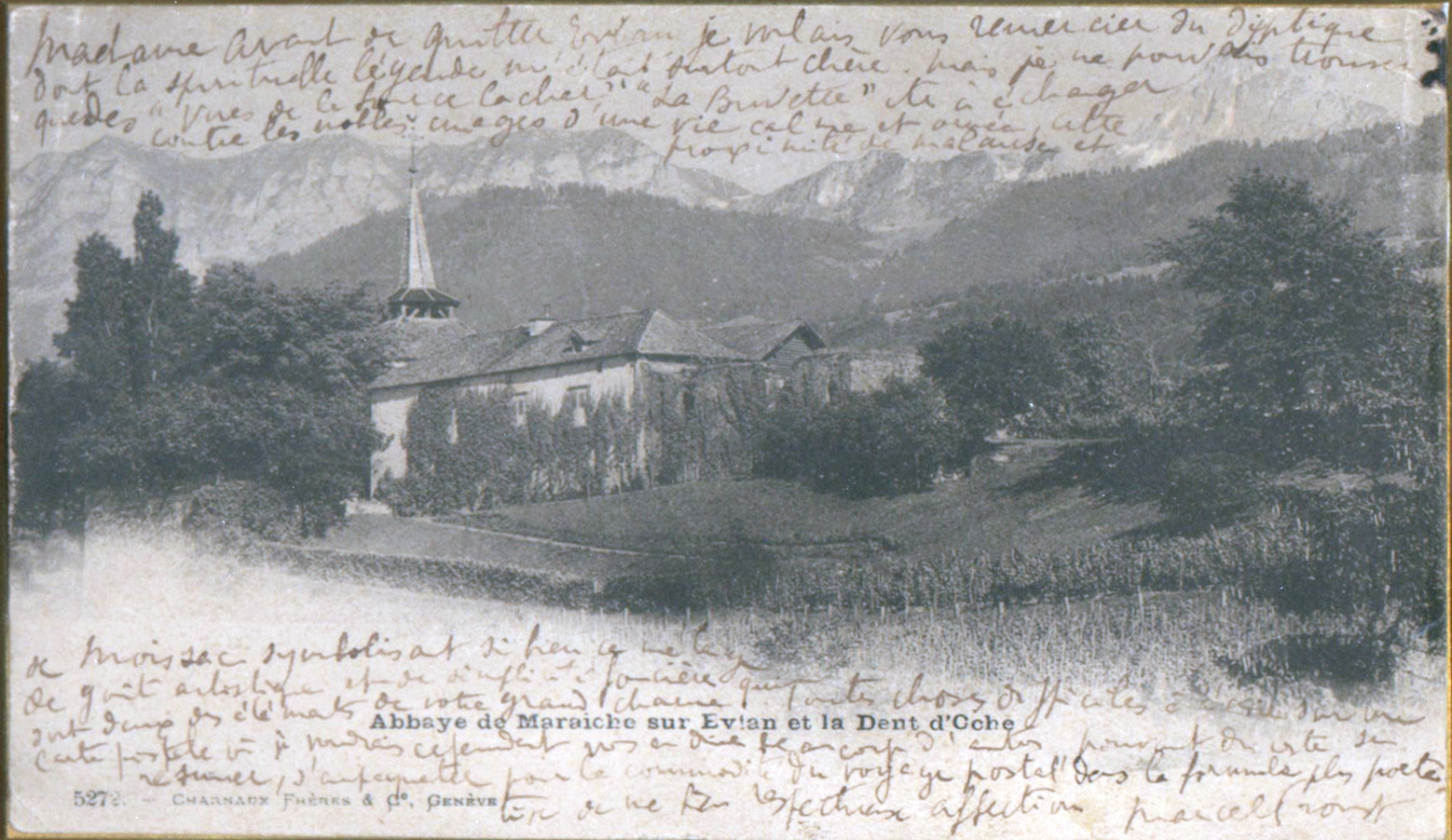 Abbaye de Maraîche sur Evian et la Dent d'Oche.