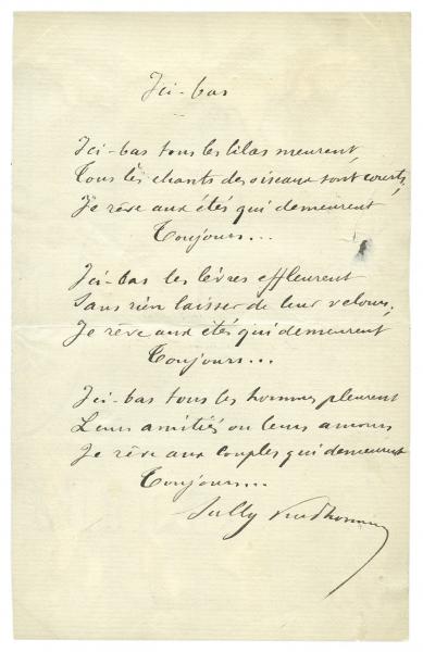 PCL – Oui, ces choses qui pourraient paraître un peu hors sujet ont quand même un grand pouvoir d’évocation, et me permettent de placer par exemple cette question de « Proust amateur d’autographes”, qui m’est particulièrement chère, étant moi-même collectionneur d’autographes. Proust n’avait en aucune façon l’âme d’un collectionneur, mais il connaissait les autographes et leur valeur pour les amateurs. Il a essayé d’acheter une lettre de Mozart – qu’il n’a pas obtenue – pour l’offrir à Reynaldo Hahn dont c’était l’idole. Luc Fraisse a réuni toute une documentation autour du désir de Proust d’offrir un poème autographe de Sully Prudhomme à Gaston Calmette, ce qui m’offrait aussi l’occasion de parler du poème « Ici-bas tous les lilas meurent ».