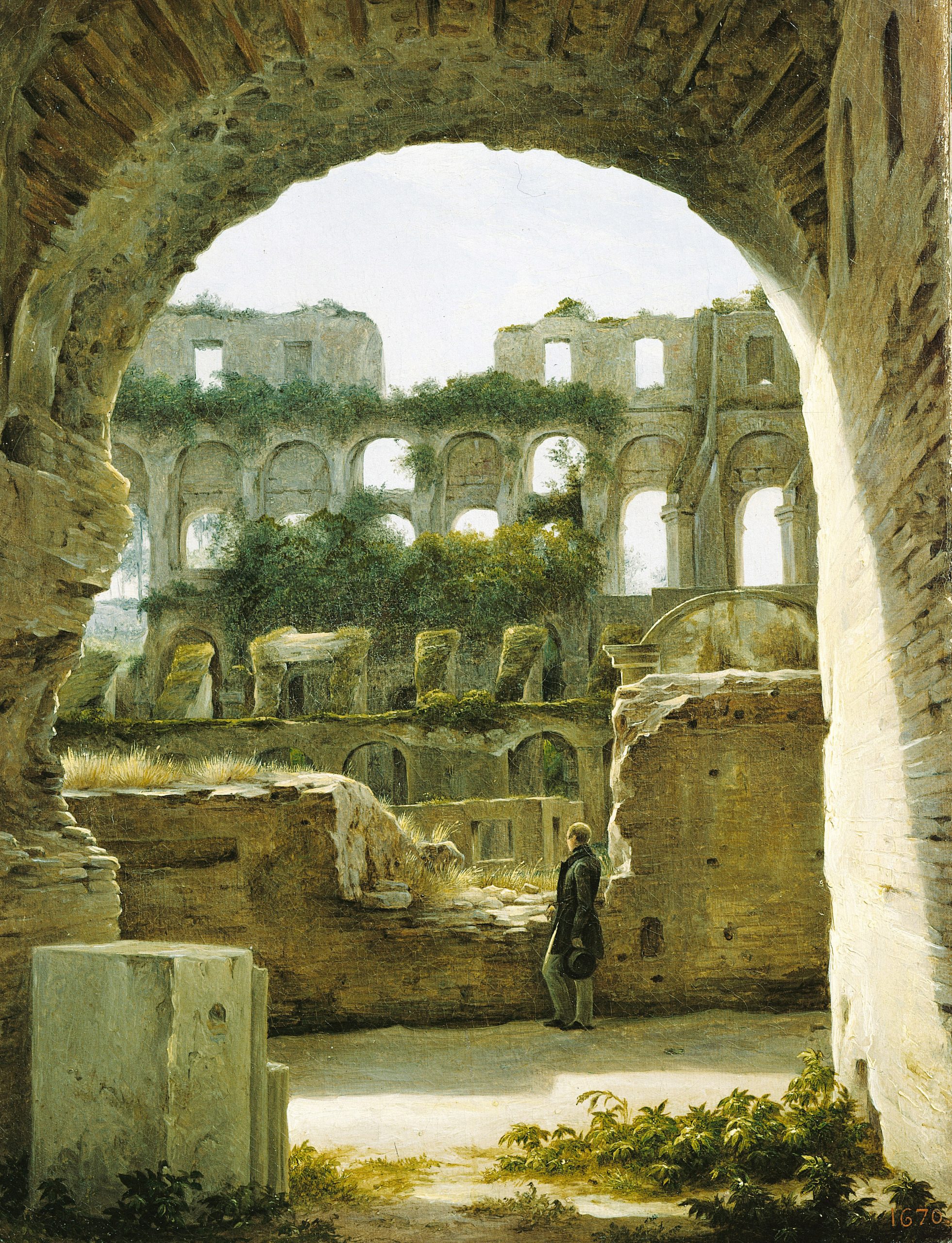 Lorsqu’il travaillait à cette église, Michel-Ange, déjà très vieux, fut trouvé un jour d’hiver, après la chute d’une grande quantité de neige, errant au milieu des ruines du Colysée. Il venait monter son âme au ton qu’il fallait pour pouvoir sentir les beautés et les défauts de son propre dessin de la coupole de Saint-Pierre. Tel est l’empire de la beauté sublime ; un théâtre donne des idées pour une église. Stendhal, Promenades dans Rome