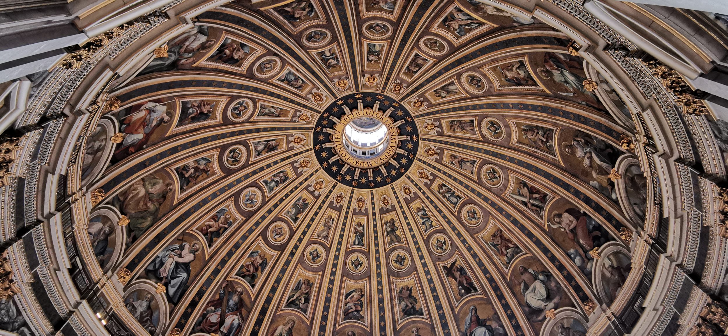 En levant les yeux, quand on est près de l’autel, on aperçoit la grande coupole, et l’être le plus plat peut se faire une idée du génie de Michel- Ange. Pour peu qu’on possède le feu sacré, on est étourdi d’admiration. Je conseille au voyageur de s’asseoir sur un banc de bois et d’appuyer sa tête sur le dossier ; là il pourra se reposer et contempler à loisir le vide immense qui plane au-dessus de sa tête. Stendhal, Promenades dans Rome