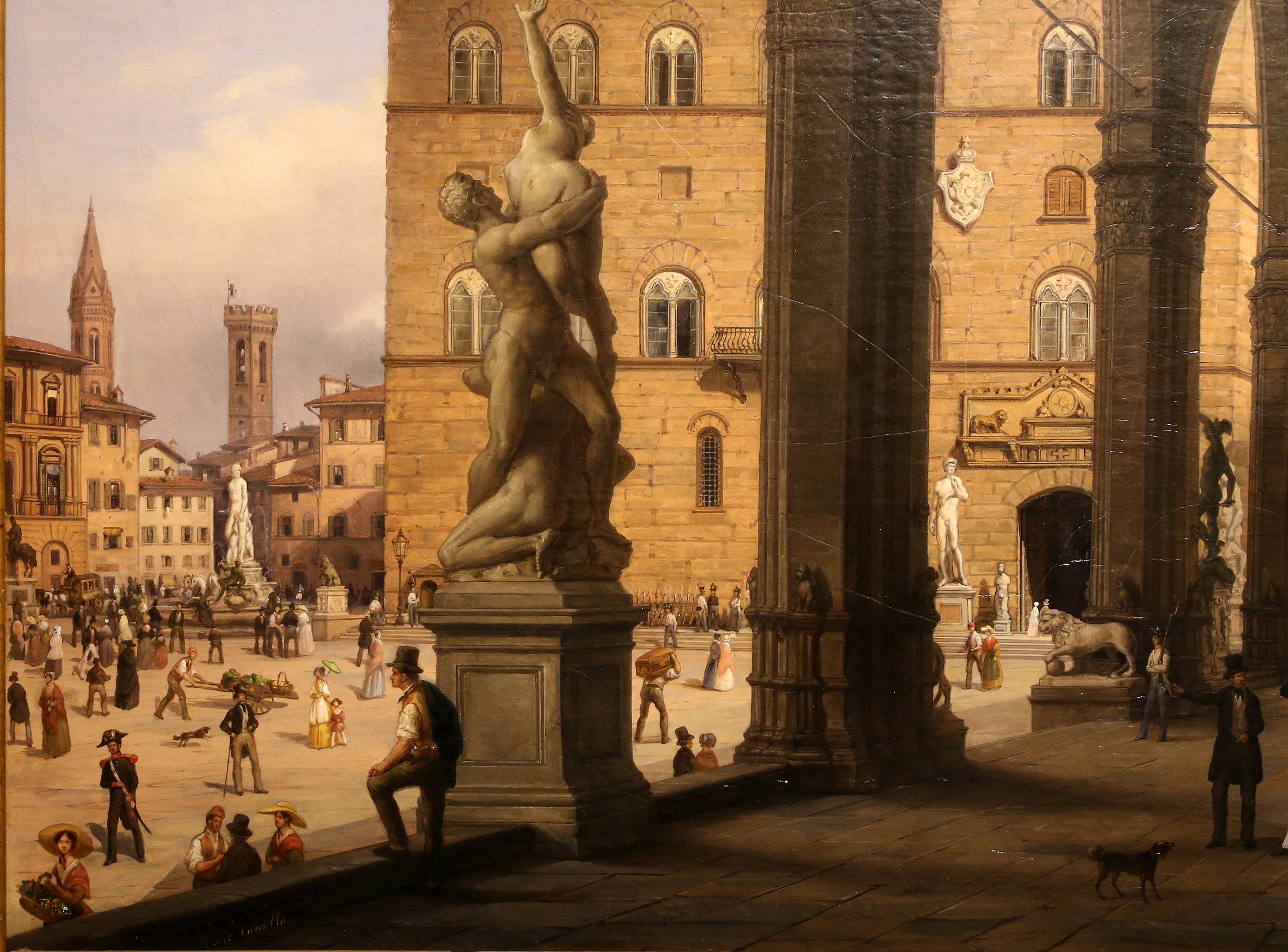 Carlo Canella, Vue de la place du Grand-Duc à Florence, prise sur la loggia dei Lanzi,