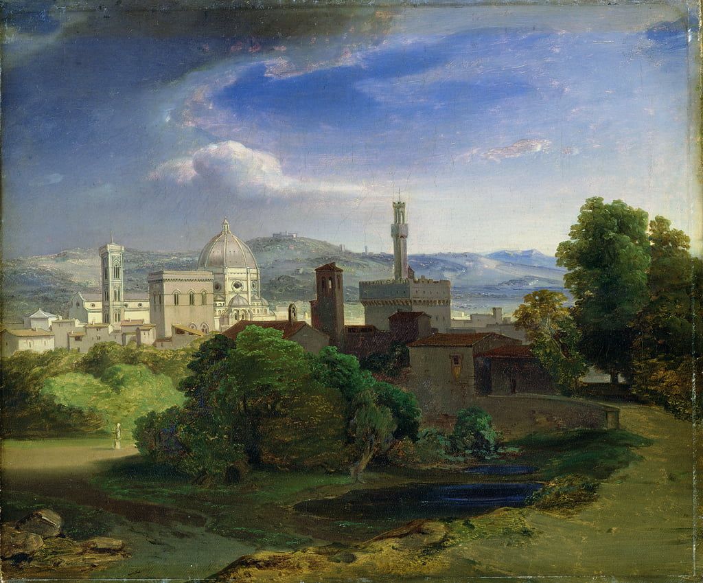 « Avant-hier, en descendant l’Apennin pour arriver à Florence, mon cœur battait avec force. Quel enfantillage ! Enfin, à un détour de la route, mon œil a plongé dans la plaine, et j’ai aperçu de loin, comme une masse sombre, Santa Maria del Fiore et sa fameuse coupole, chef-d’œuvre de Brunelleschi. « C’est là qu’ont vécu le Dante, Michel-Ange, Léonard de Vinci ! me disais-je ; voilà cette noble ville, la reine du Moyen Âge ! C’est dans ces murs que la civilisation a recommencé ; là, Laurent de Médicis a si bien fait le rôle de roi, et tenu une cour où, pour la première fois depuis Auguste, ne primait pas le mérite militaire. » Enfin, les souvenirs se pressaient dans mon cœur, je me sentais hors d’état de raisonner, et me livrais à ma folie comme auprès d’une femme qu’on aime. En approchant de la porte San Gallo et de son mauvais arc de triomphe, j’aurais volontiers embrassé le premier habitant de Florence que j’ai rencontré. »