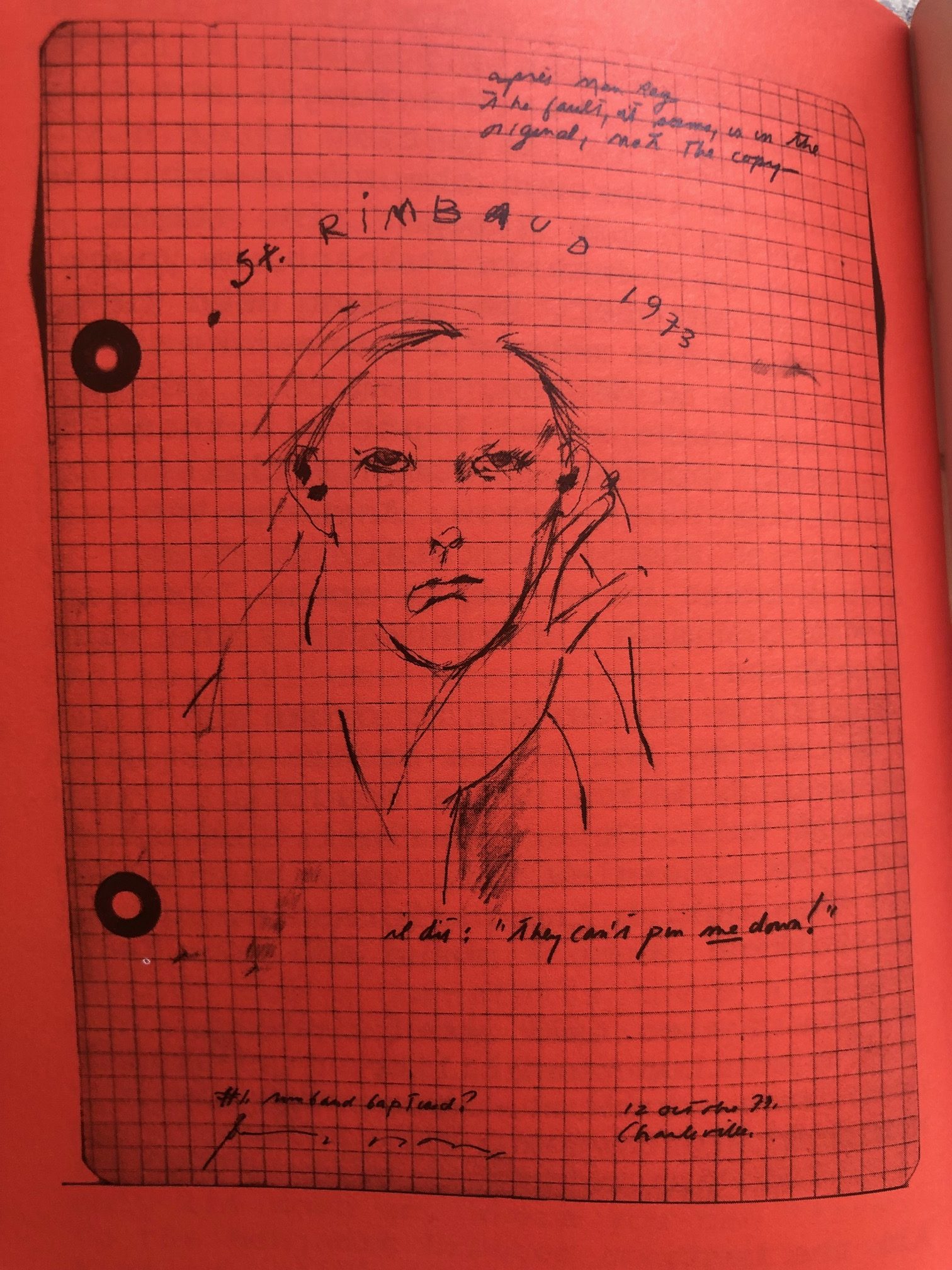 Dans le dossier suivant, nous lisons les e-mails envoyés à Patti Smith par Oscar van den Boogaard lors de la préparation de l'exposition ; ils sont écrits en anglais bien sûr, et on y suit avec intérêt son dialogue avec Patti Smith pour lui proposer de participer à l'exposition de la façon qui lui plaira : un concert, une salle d'expo dédiée, une interview en direct, etc. Les réponses de la chanteuse et poétesse sont brèves mais dévoilent toute son adhésion au projet. On sait qu'elle finira par acheter la maison familiale des Rimbaud à Roche en 2017.