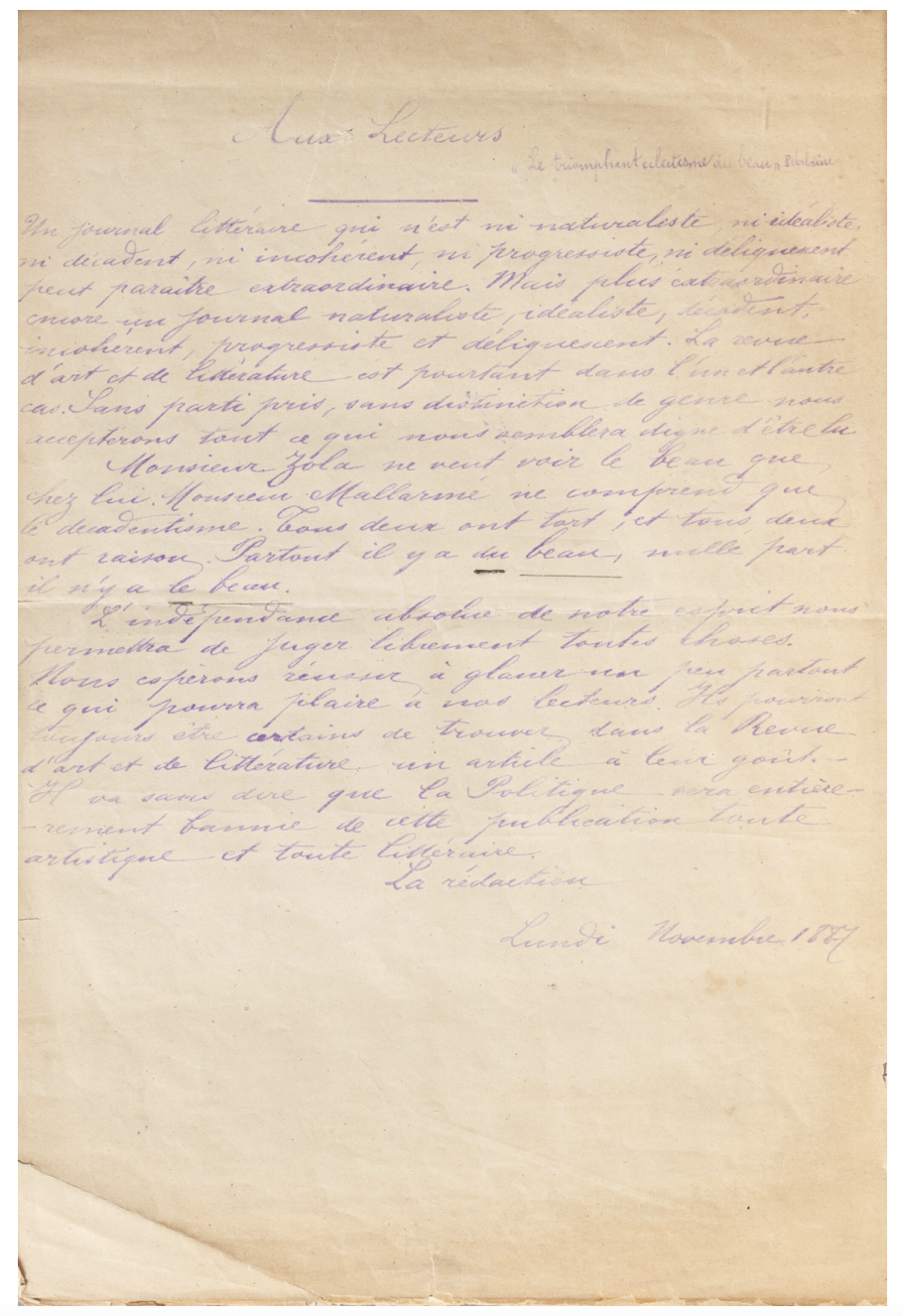 L’Hôtel Littéraire le Swann a acquis le seul exemplaire complet des cinq fascicules du Lundi, la première revue de lycéens à laquelle Proust, alors élève au lycée Condorcet, a participé.