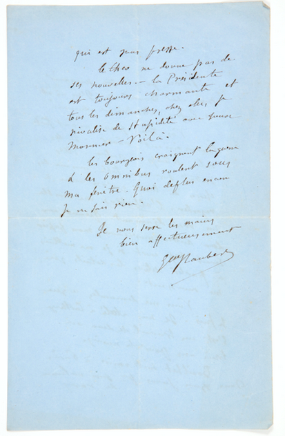 La Société des Hôtels Littéraires vient d'acquérir, par l'entremise de son président et collectionneur, Jacques Letertre, une précieuse lettre de Gustave Flaubert adressée à Charles Baudelaire, écrite à Paris le 19 février 1859.