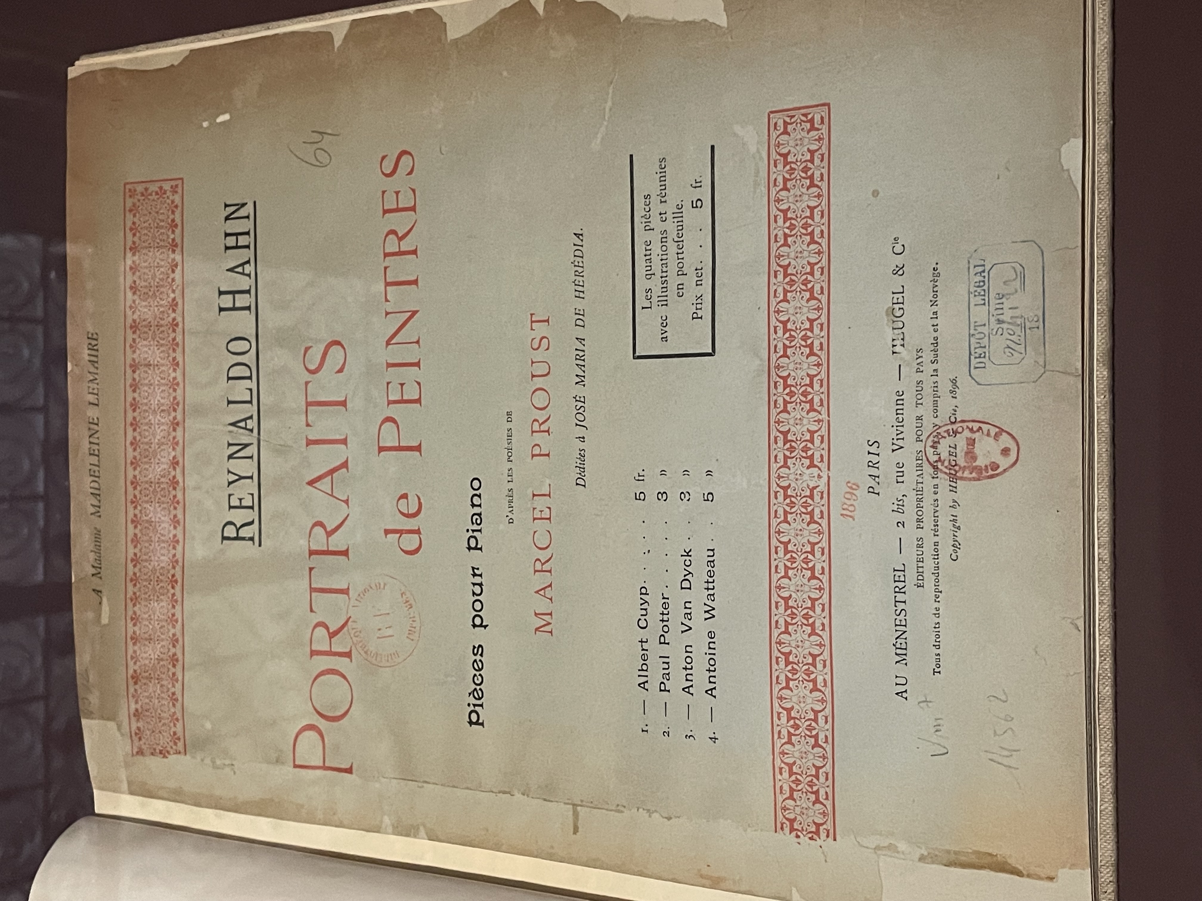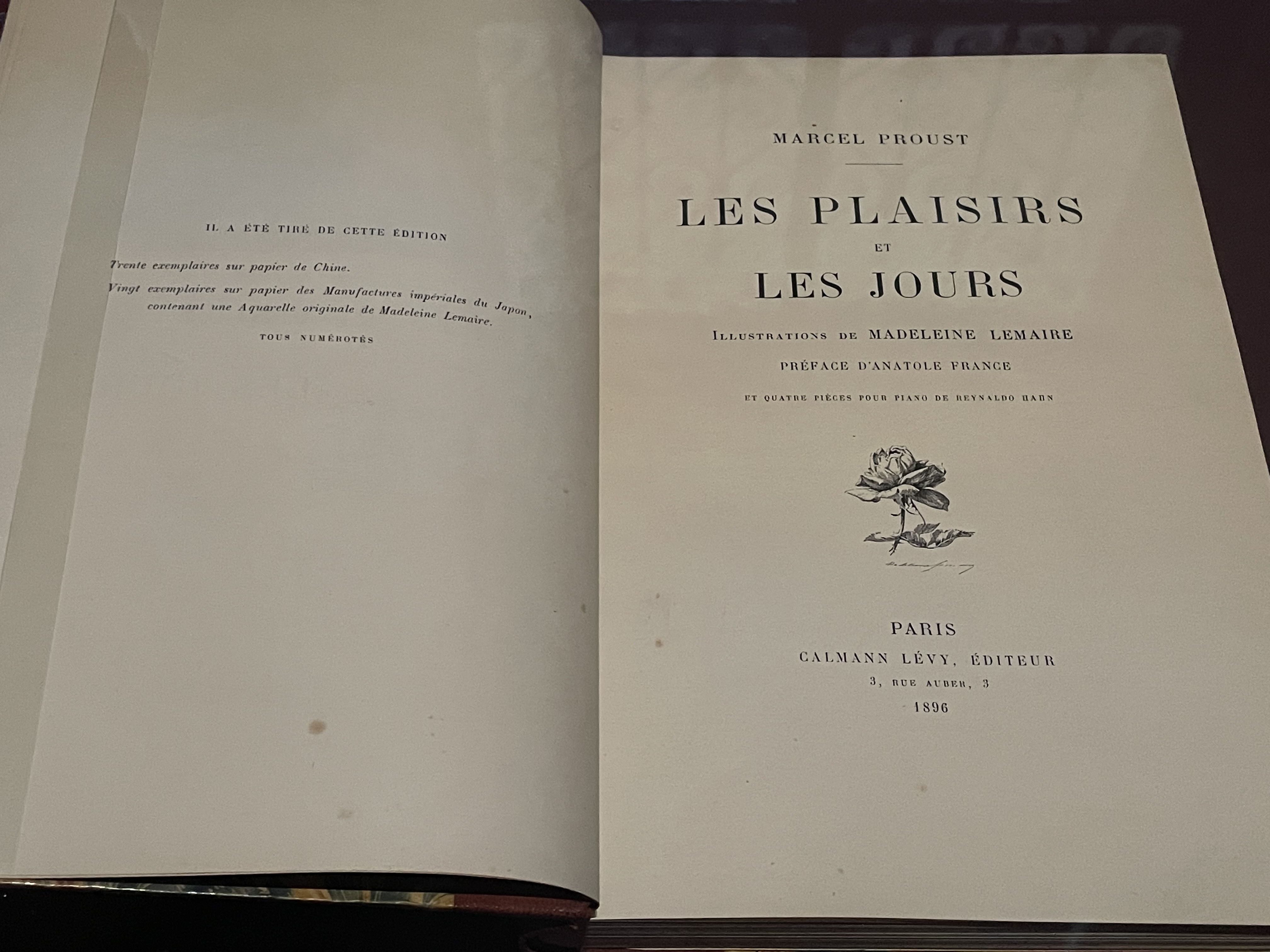 Marcel Proust, La Prisonnière Plus loin, on trouve un ouvrage qui fait référence au titre de l'exposition. En 1896, Proust publie son premier livre, Les Plaisirs et les Jours, illustré par des aquarelles de Madeleine Lemaire et agrémenté d'une préface d’Anatole France, accompagné de 4 pièces pour piano de son ami Reynaldo Hahn. Ces dernières avaient été publiées par le musicien la même année dans Portraits de peintres. Pièces pour piano d’après les poèmes de Marcel Proust, libres compositions au sujet des peintres Albert Cuyp, Paul Potter, Anton Van Dyck et Antoine Watteau. L'Hôtel Littéraire Le Swann expose une précieuse édition originale des Plaisirs et des Jours, l'exemplaire n°2 d'une des 20 éditions sur Japon.En 1898, Boldini peint le portrait de l’artiste américain Whistler et expose au Salon celui du comte Robert de Montesquiou, l'un des modèles de Proust pour le personnage de Palamède de Charlus.