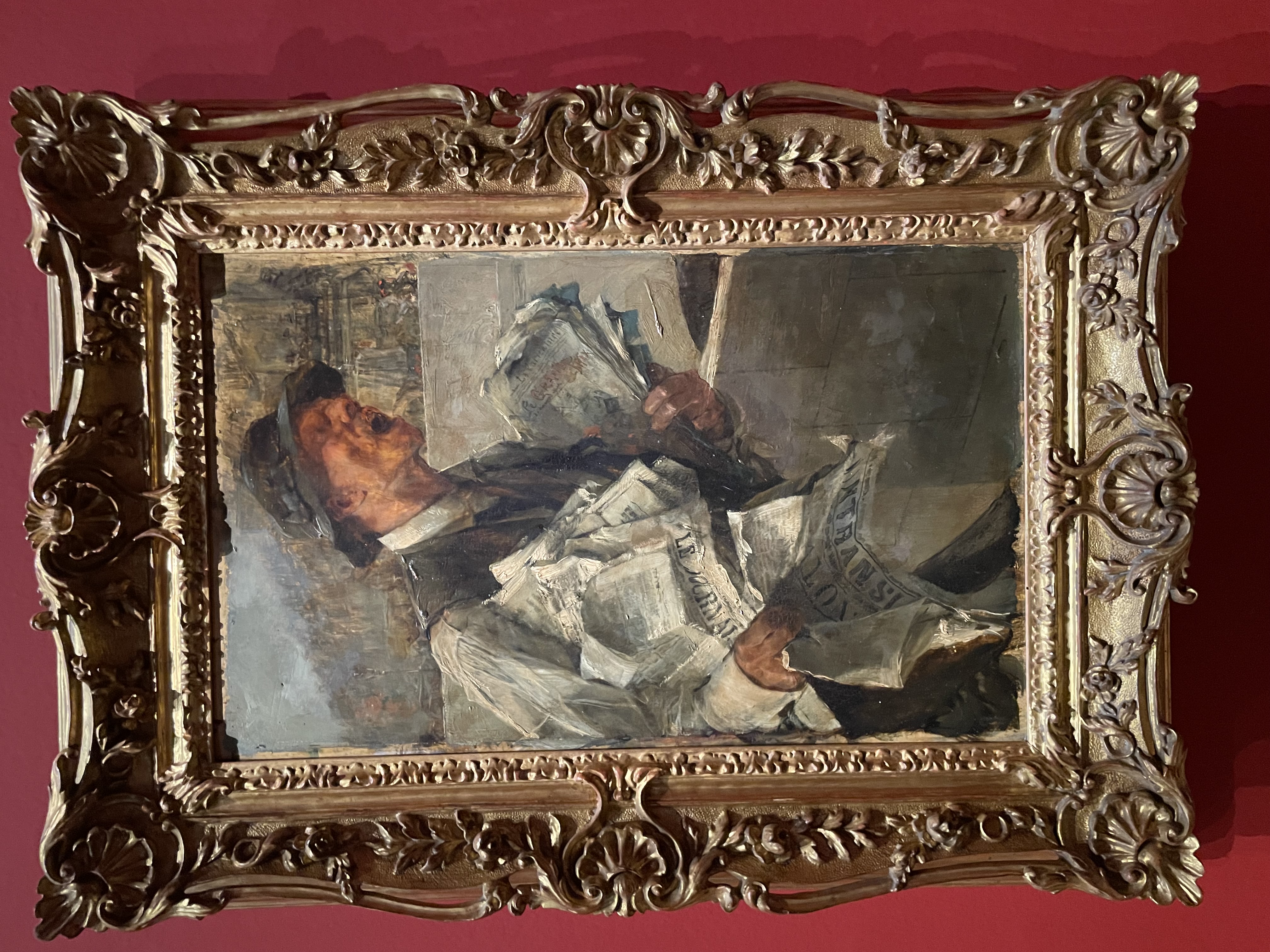 Selon l’esthétique de Proust, « c’est en descendant en profondeur dans une individualité » que l’on peut comprendre l’âme humaine. À l’instar de l’écrivain, c’est l’individu singulier, dont il cherche à saisir l’essence, qui intéresse Boldini dans ses portraits. Ainsi, si la plupart des noms de ses modèles sont oubliés aujourd’hui, ils évoquent ce « temps perdu » cher à Proust, ces « plaisirs » et ces « jours » d’une époque si singulière." Voici quelques livres et tableaux glanés au hasard de la visite. Commençons par ce "Crieur de journaux parisien" qui n'est pas sans rappeler l'épisode des "Cris de Paris" de La Prisonnière :Giovanni Boldini, Le Crieur de journaux parisiens", vers 1880 (Naples, musée de Capodimonte)