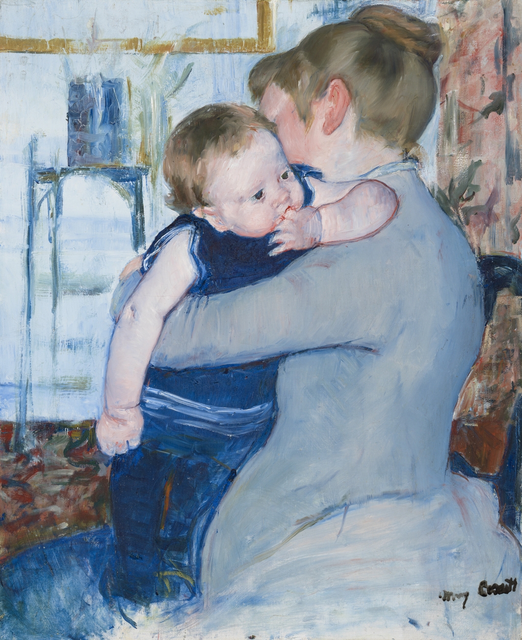 Mary Cassatt, Bébé dans un costume bleu, regardant par dessus l‘épaule de sa mère, vers 1883-1885, huile sur toile, 72,9 x 59,9 cm, Inv. CAM 1928.222, Cincinnati Art Museum, John J. Emery Fund © Cincinnati Art Museum