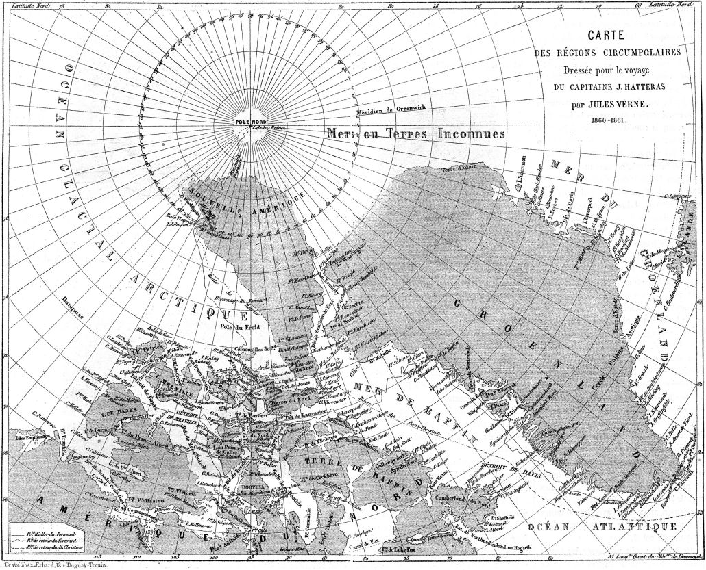 Cette note de lecture est consacrée aux Voyages et aventures du capitaine Hatteras, l'un des premiers livres de Jules Verne, paru en 1866 juste après le succès de Cinq semaines en ballon chez le même éditeur Hetzel et également illustré par le talentueux Edouard Riou. C'est le premier titre à porter la célèbre mention des "Voyages extraordinaires" que son éditeur eut l'idée de donner à toute la collection des futurs romans de cet écrivain prometteur.