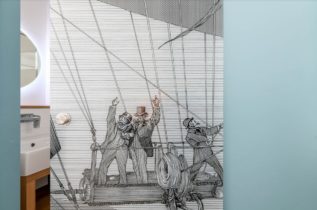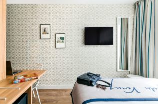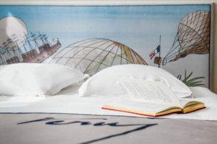 For example, to pay tribute to the designers much appreciated by Alexandre Vialatte, we called on local artists, who interpreted the drawings of Chaval, Sempé or Dubuffet in their own way. At Flaubert you will find the parrot Loulou, hero of Un cœur simple, reproduced on wallpaper or enthroned in his cage, in front of the library. At Proust, it will be the reproduction of Jean de Gonet’s bookbinding plates for La Recherche that adorn the Jacques Guérin room or the Japanese paper room chandeliers that evoke the magic lantern of Combray.