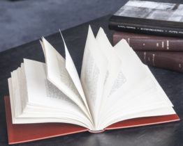 At Alexandre Vialatte, the original editions of Badonce et les créatures, Battling le ténébreux (with a binding by Nobuko Kiyomiya), Les Fruits du Congo [Fruit of the Congo], La Dame du Job, La maison du joueur de flûte [The house of the flute player] and many others are gathered under one showcase. We also have his chronicles for La Montagne collected by Ferny Besson and published in thirteen volumes by Julliard, like L’éléphant est irréfutable and Dernières nouvelles de l’homme, but also the chronicles for other newspapers, L’oiseau du mois or Dires étonnants des astrologues, his correspondence with Jean Dubuffet (binding by Nathalie Berjon) and the complete collection of Cahiers published by the Friends of Alexandre Vialatte association.