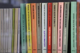 At Marcel Aymé, Les Contes du chat perché [The Wonderful Farm], bound according to the model of Paul Bonet, has joined the original editions of his novels and collections of short stories, such as La Table-aux-Crevés [The Hollow Field], La Rue sans nom, La Jument verte [The Green Mare], Travelingue, Le Chemin des écoliers [The Transient Hour], Uranus, Le Passe-Muraille [The Man Who Could Pass Through Walls] and Le Vin de Paris, many of which are bound by Bernard Alix. You will also notice his plays published by Grasset or Gallimard: Vogue la galère, Lucienne et le boucher [Licienne and the Butcher], Clérambard or La Tête des autres [The Head of Others].