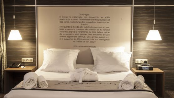 The headboards present the quote of Sentimental Education, evoking the hero of the book, Frédéric Moreau: