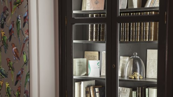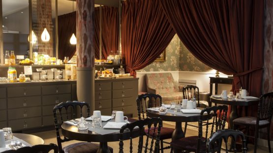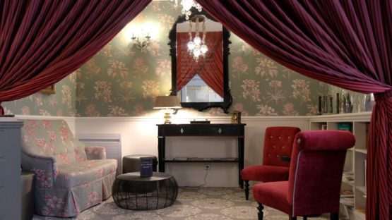 The decoration of the Hôtel Littéraire Gustave Flaubert was designed by architect Aude Bruguière assisted by Aleth Prime, interior decorator, to pay tribute to the writer and introduce us to his world. Emma Bovary’s little boudoir has been reconstructed as it is described in Flaubert’s novel, not far from the hanging cage of the parrot Loulou, hero of A Simple Heart. A shimmering wallpaper with his effigy leads to the reception, which evokes the medical world of the writer’s childhood at Hôtel-Dieu, in front of Helleu’s Seine Landscape, recalling the view contemplated by Flaubert from his Croisset salon.